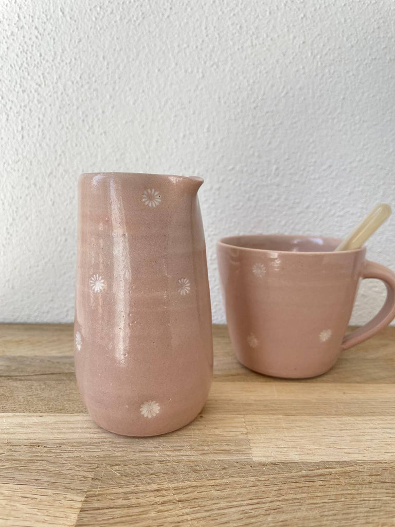 Dieses handgefertige Kännchen passt ohne Henkel gut in die Hand. Passend für Milch  oder Sahne zum Kaffee.